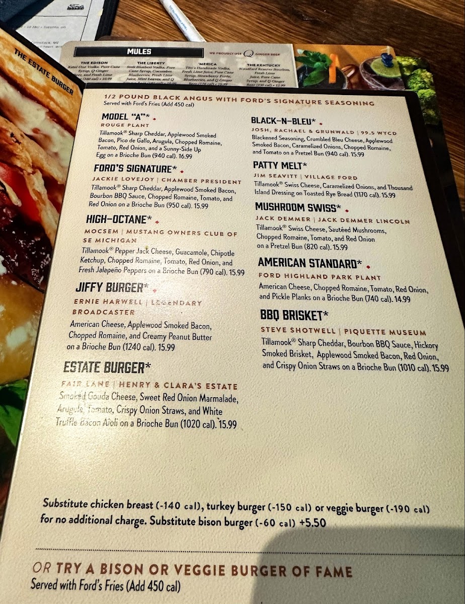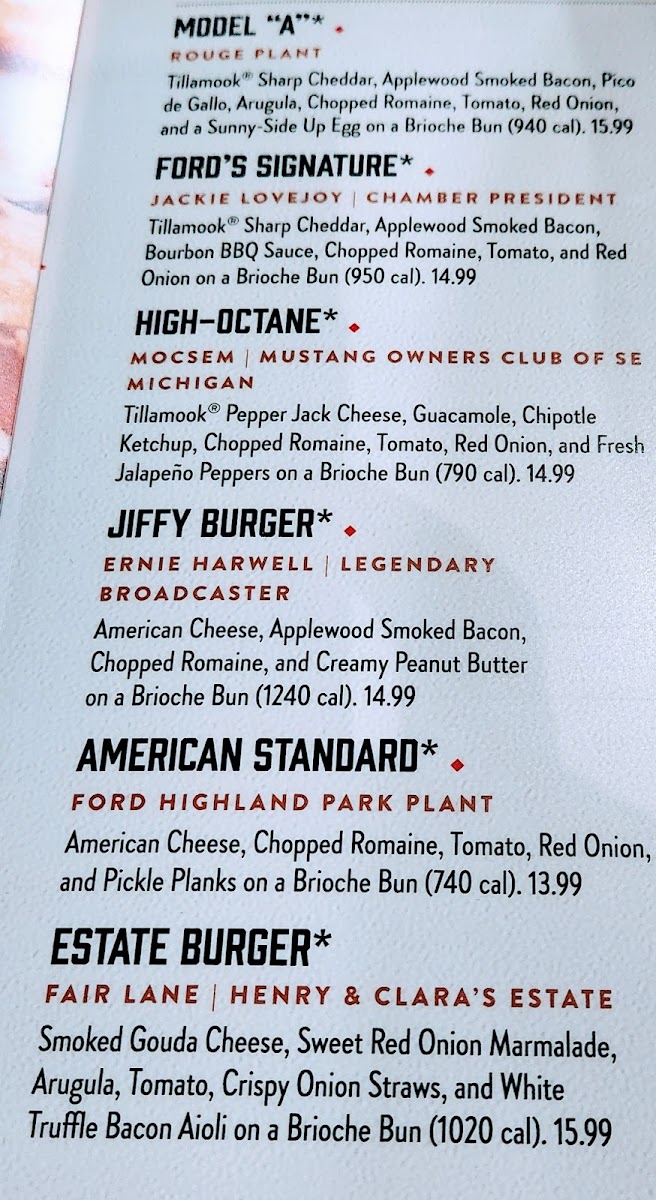 Ford's Garage Dearborn Menu